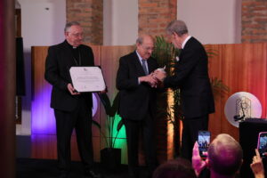 *Pies de foto: ‘José María Viejo, director general de FUNDOS durante la gala/ Jorge Luis García, presidente de FUNDOS y Luis Ángel de las Heras, Obispo de la Diócesis de León entregan el ‘León de Plata’ a Esteve Camps, presidente delegado de la Junta Constructora del Temple Expiatori de la Sagrada Família